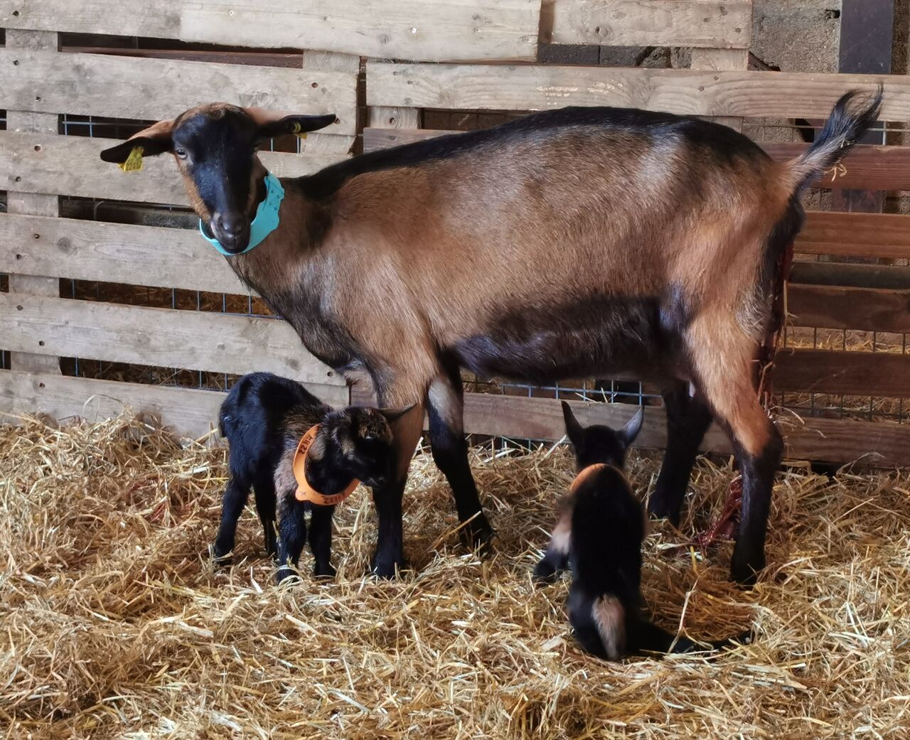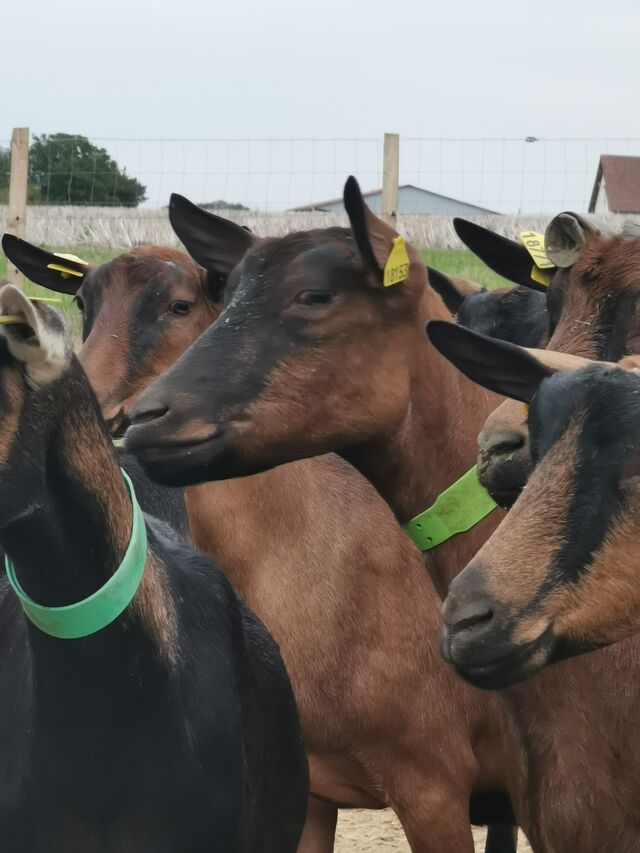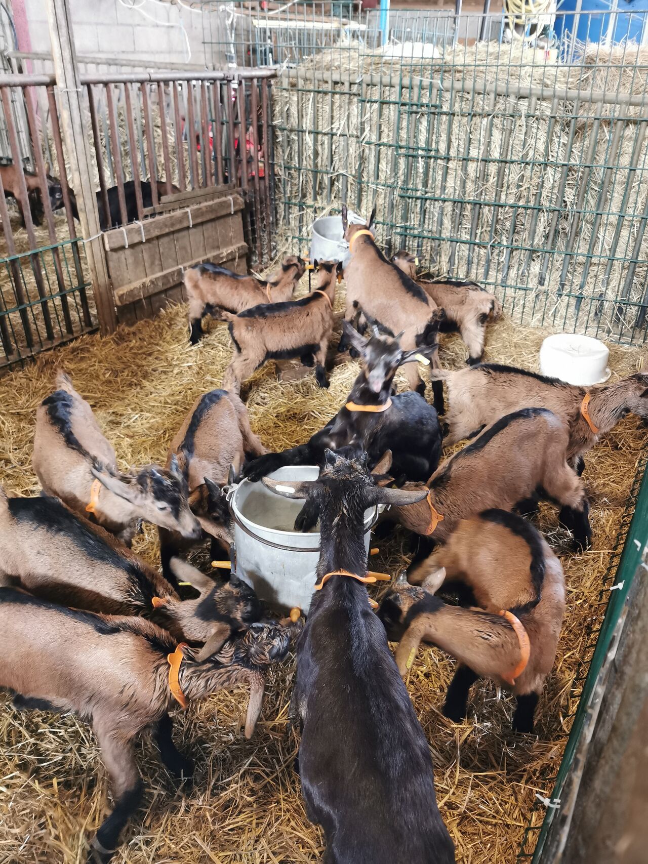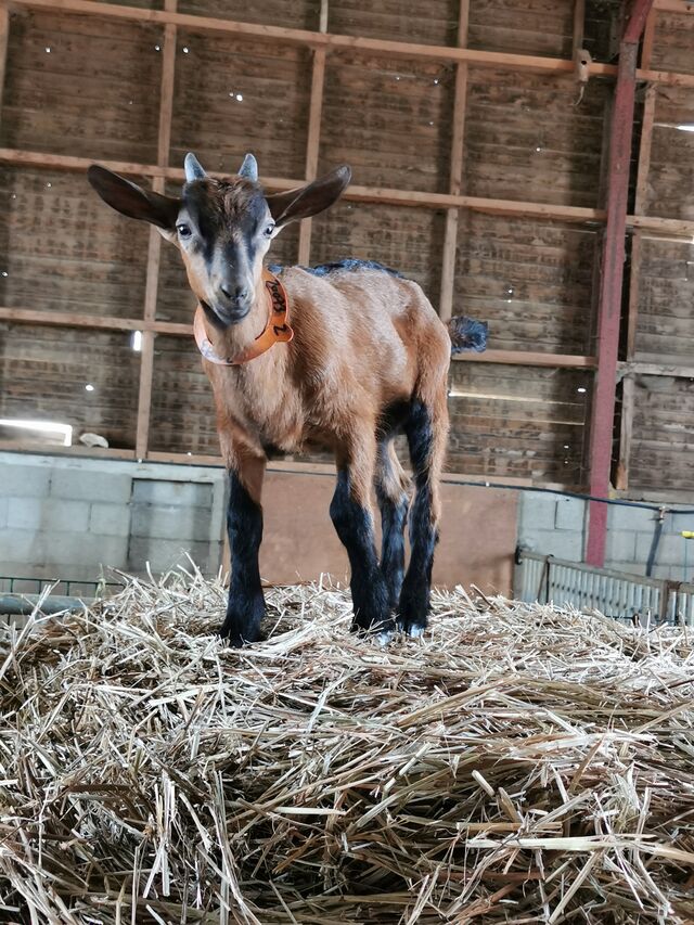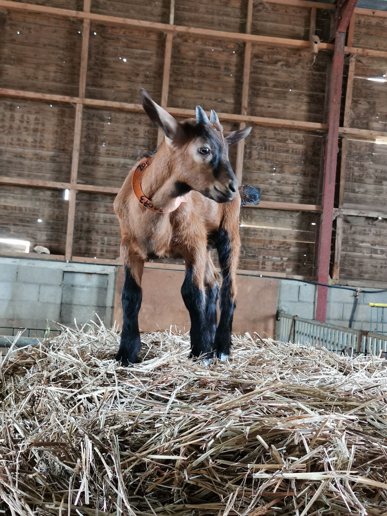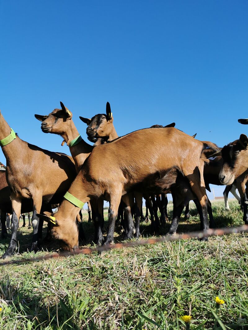 Le travail à la ferme m’a tant plu que j’y suis retournée régulièrement en stage par la suite. Le métier change et varie au fils des saisons et l’on enfile successivement les casquettes de « sage-femme » lors des mises bas, fromager, éleveur et biens d’autres. Après l’obtention de mon monitorat et 2 années à enseigner, j’ai progressivement quitté l’équitation pour rejoindre Catherine. Elle m’a prise pour employée et formée pour prendre sa suite. Au début de l’année 2022, j’ai donc repris les rênes de l’exploitation ! 70 belles chèvres laitières de race alpine et 20 chevrettes. Venez à la chèvrerie rencontrer nos chevrettes et chèvres et découvrir tous nos bons produits : bûches, bouchons natures et aromatisés, petits chèvres d’Ile de-France et crottins !