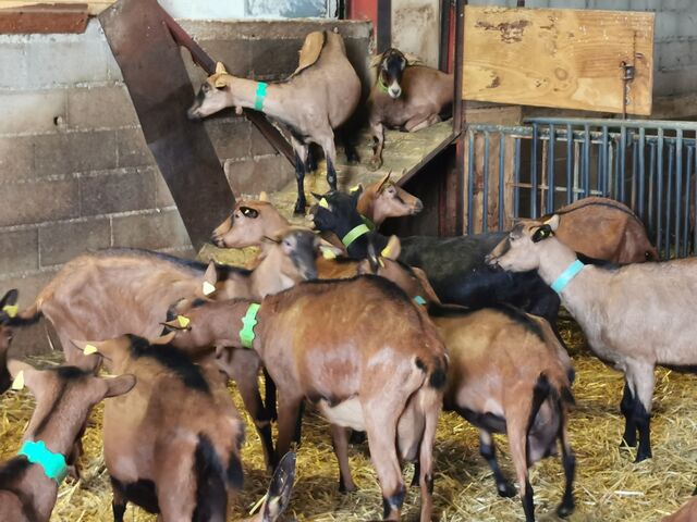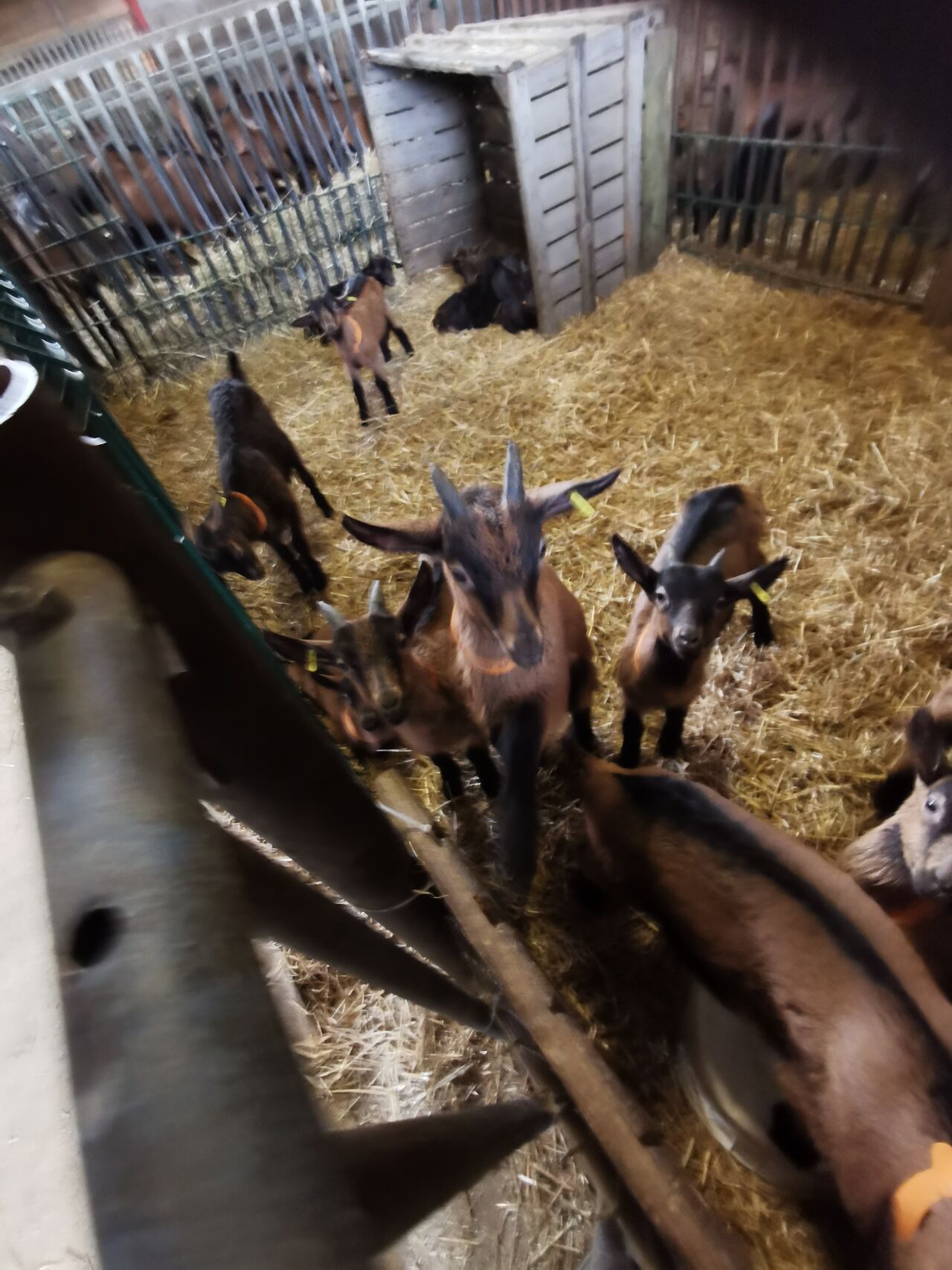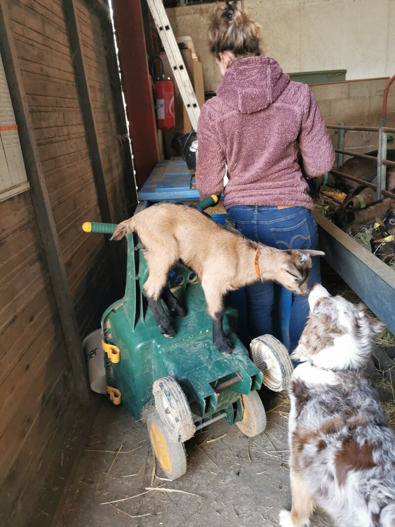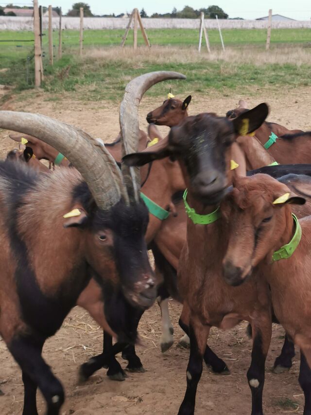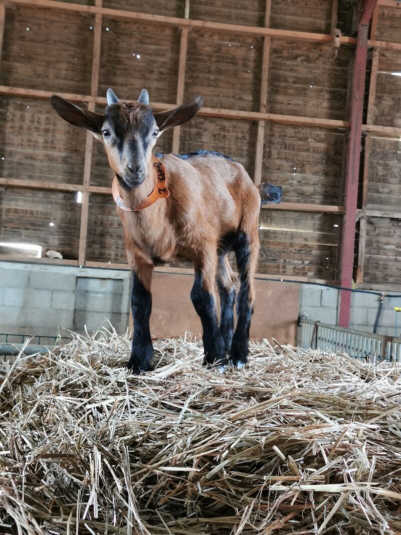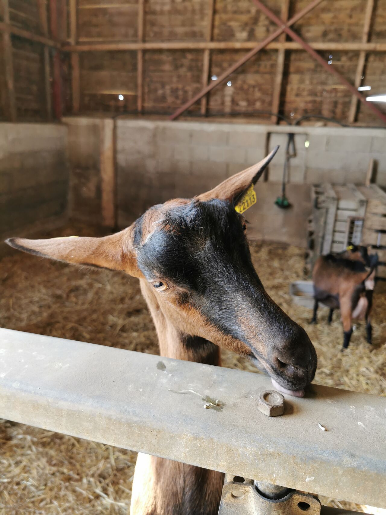 Le travail à la ferme m’a tant plu que j’y suis retournée régulièrement en stage par la suite. Le métier change et varie au fils des saisons et l’on enfile successivement les casquettes de « sage-femme » lors des mises bas, fromager, éleveur et biens d’autres. Après l’obtention de mon monitorat et 2 années à enseigner, j’ai progressivement quitté l’équitation pour rejoindre Catherine. Elle m’a prise pour employée et formée pour prendre sa suite. Au début de l’année 2022, j’ai donc repris les rênes de l’exploitation ! 70 belles chèvres laitières de race alpine et 20 chevrettes. Venez à la chèvrerie rencontrer nos chevrettes et chèvres et découvrir tous nos bons produits : bûches, bouchons natures et aromatisés, petits chèvres d’Ile de-France et crottins !