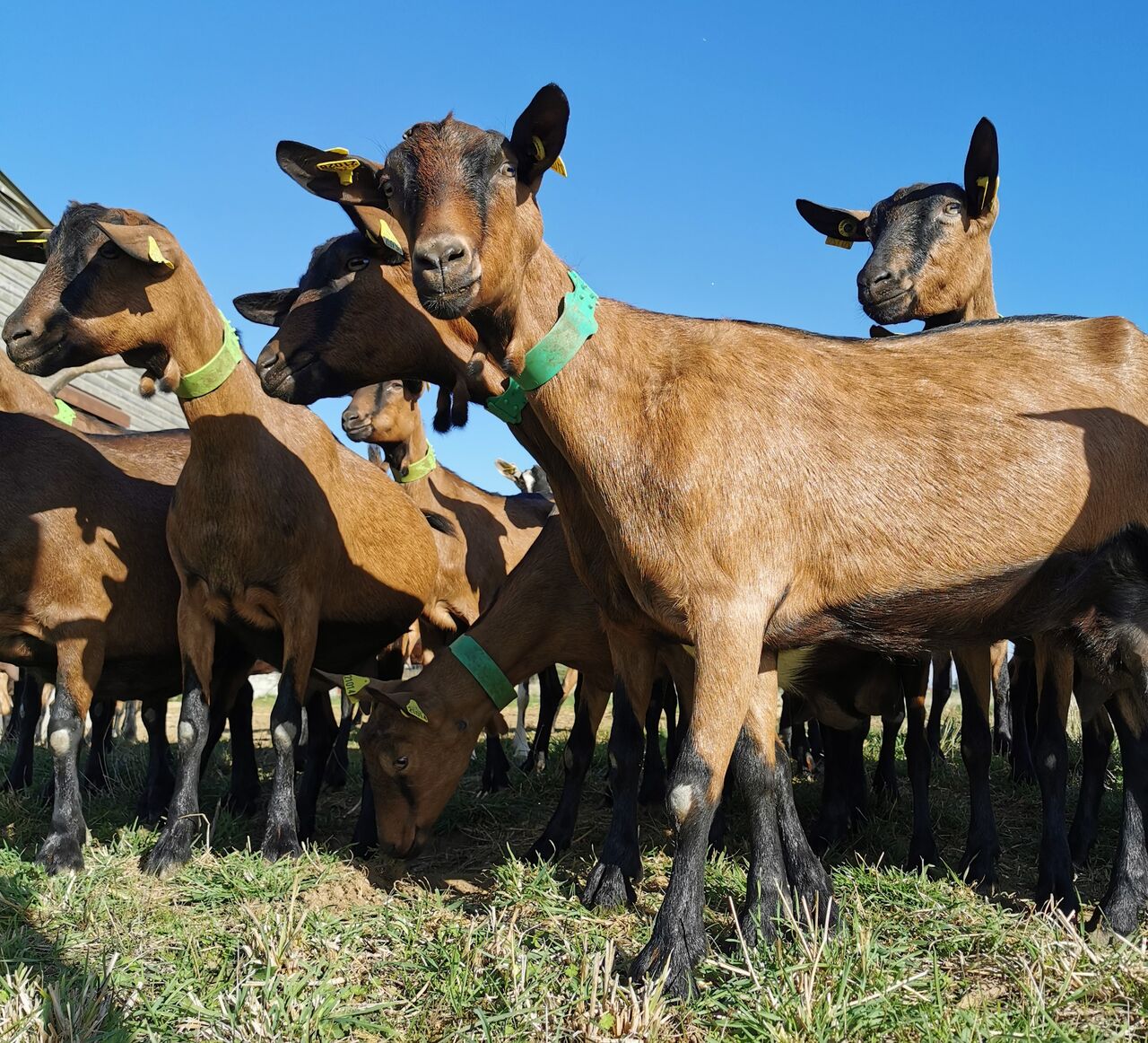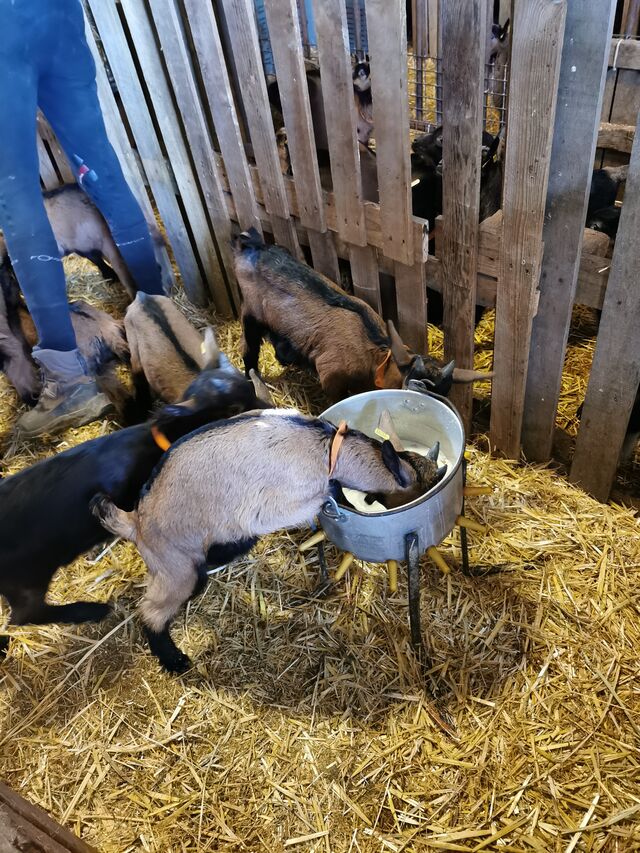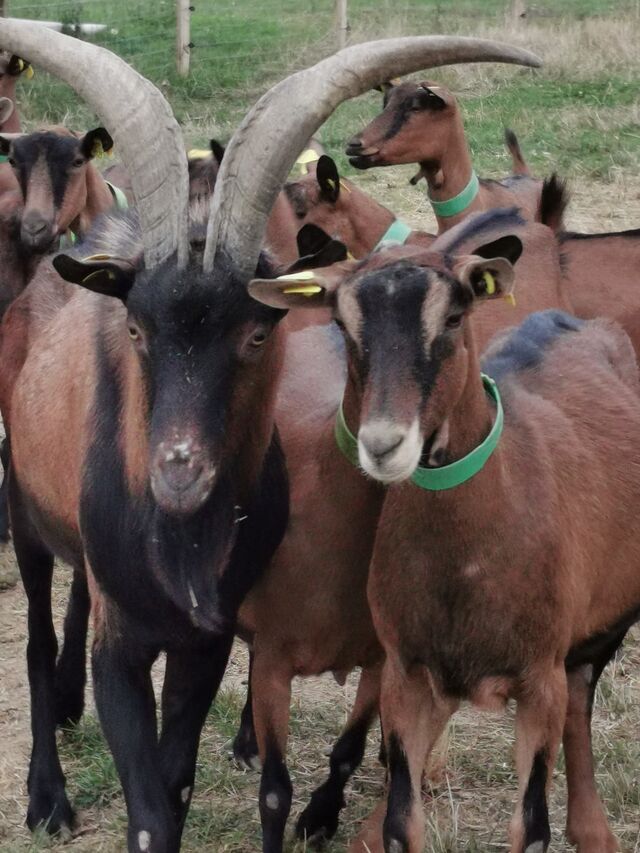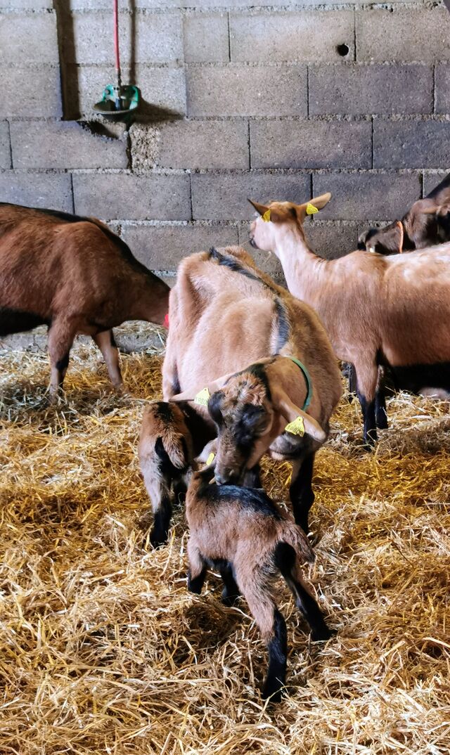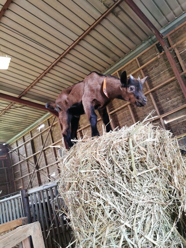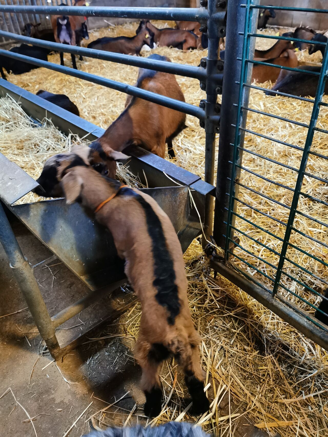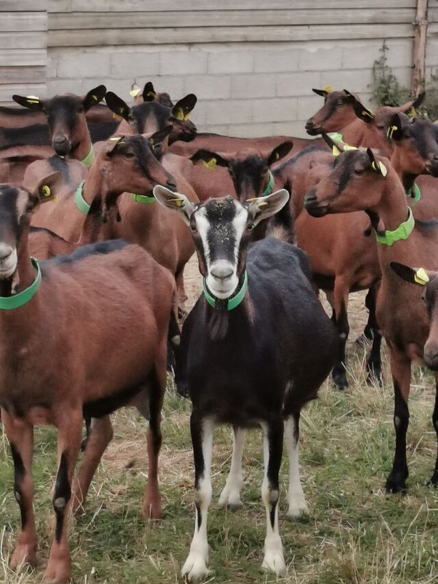Le travail à la ferme m’a tant plu que j’y suis retournée régulièrement en stage par la suite. Le métier change et varie au fils des saisons et l’on enfile successivement les casquettes de « sage-femme » lors des mises bas, fromager, éleveur et biens d’autres. Après l’obtention de mon monitorat et 2 années à enseigner, j’ai progressivement quitté l’équitation pour rejoindre Catherine. Elle m’a prise pour employée et formée pour prendre sa suite. Au début de l’année 2022, j’ai donc repris les rênes de l’exploitation ! 70 belles chèvres laitières de race alpine et 20 chevrettes. Venez à la chèvrerie rencontrer nos chevrettes et chèvres et découvrir tous nos bons produits : bûches, bouchons natures et aromatisés, petits chèvres d’Ile de-France et crottins !