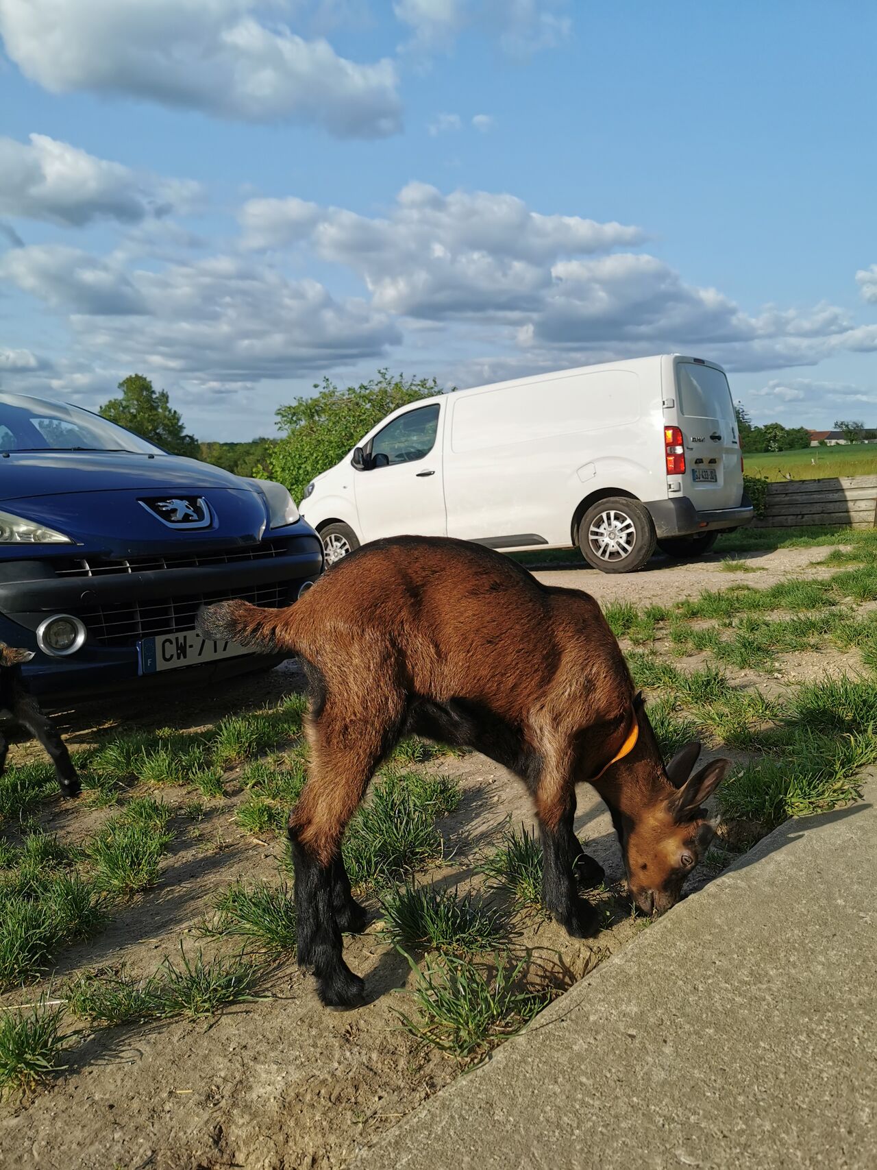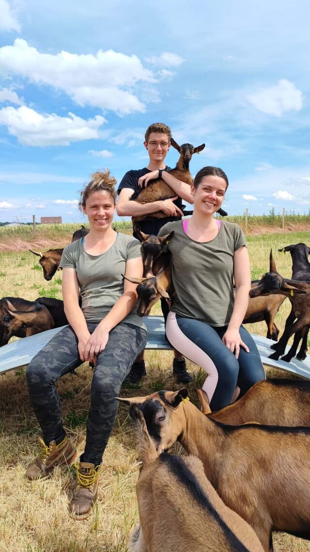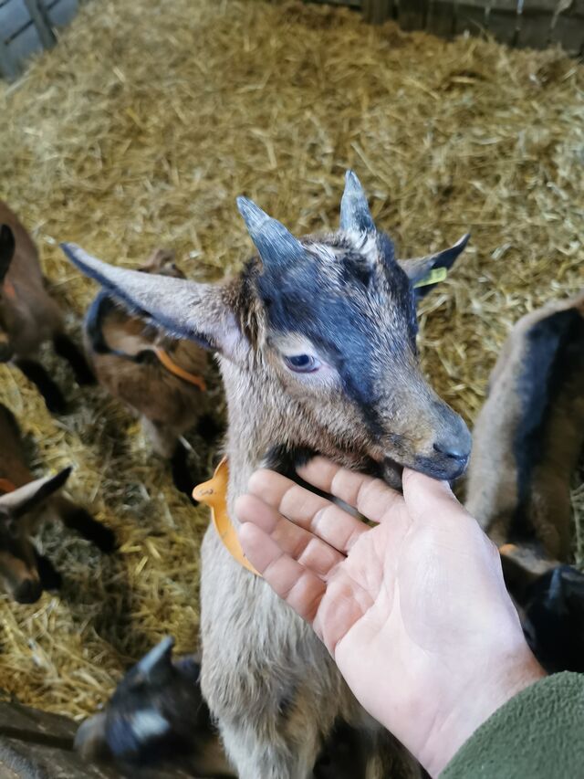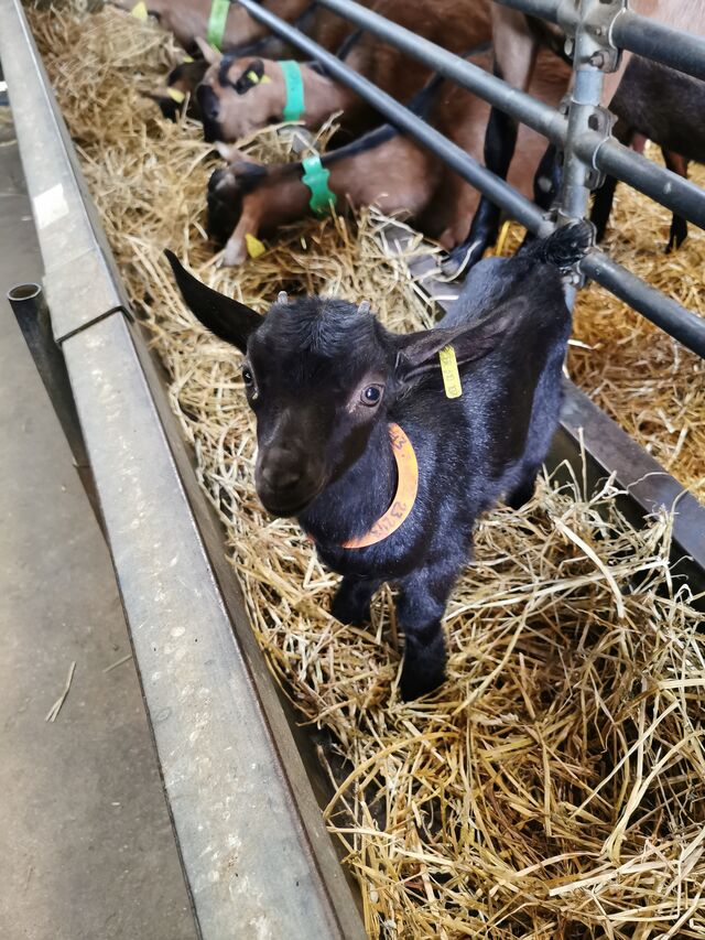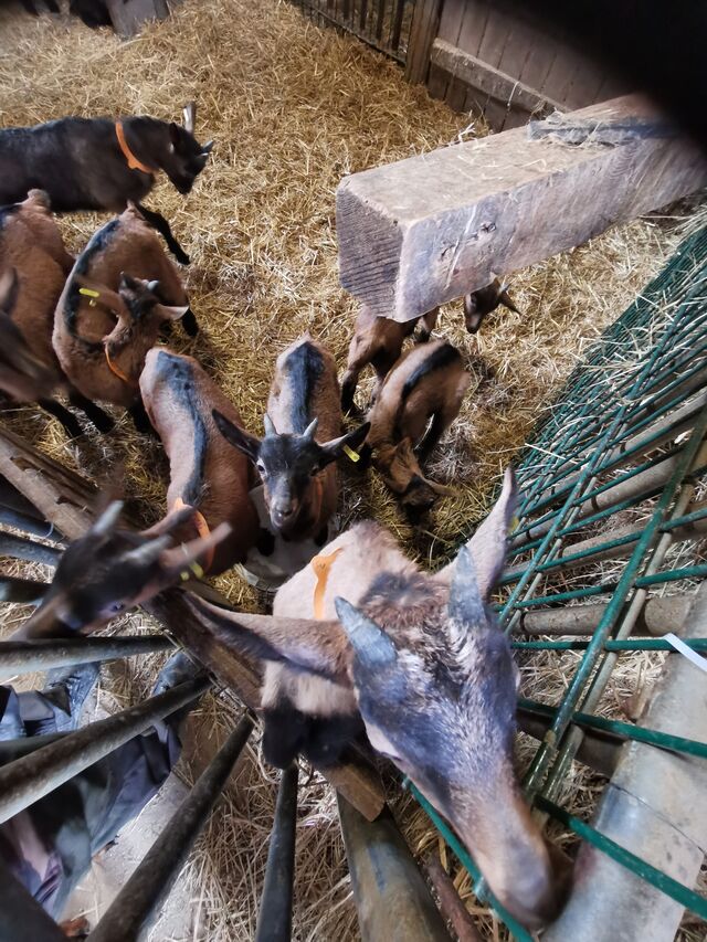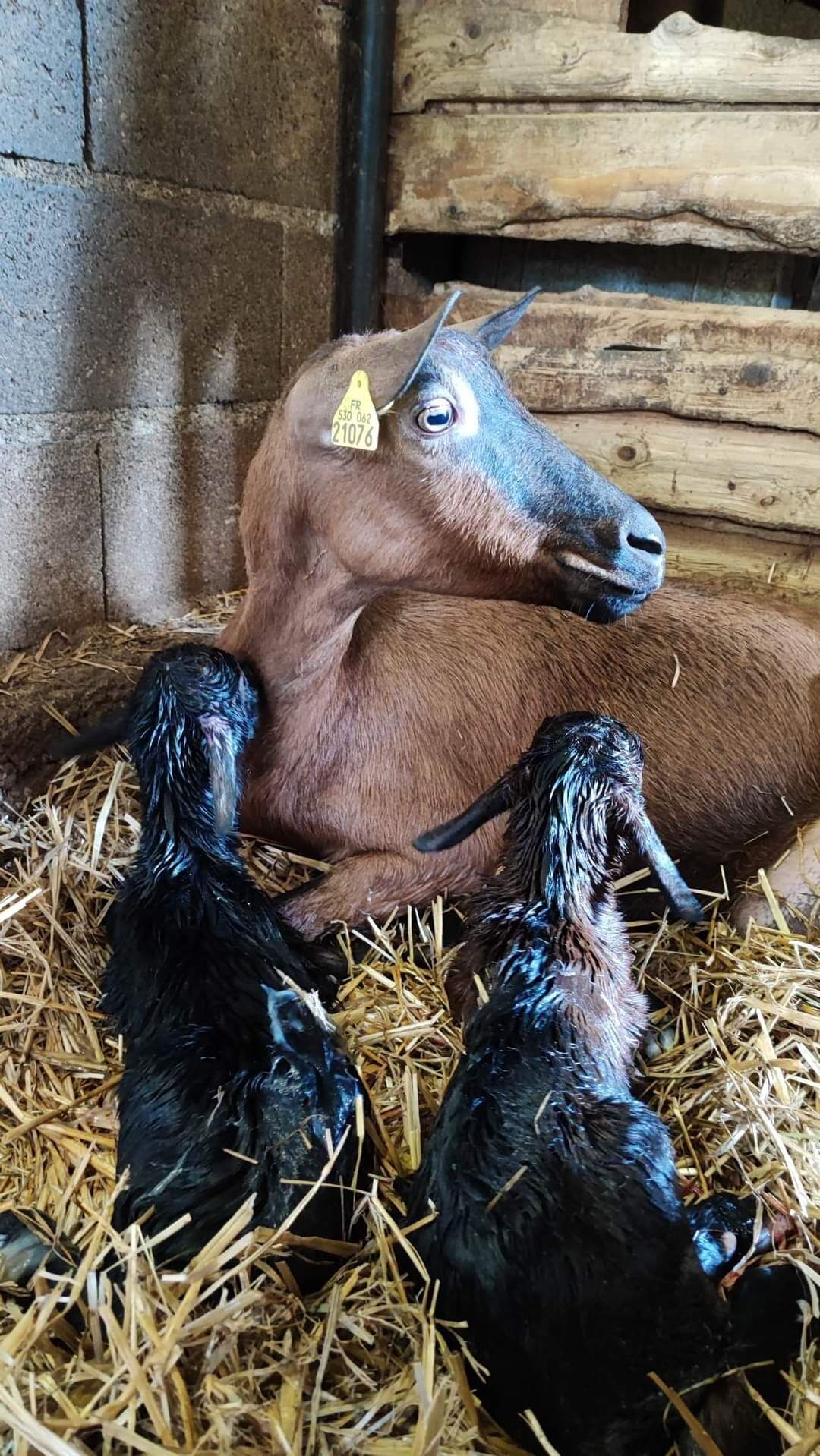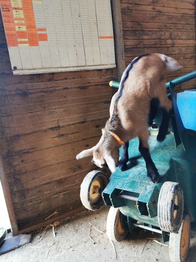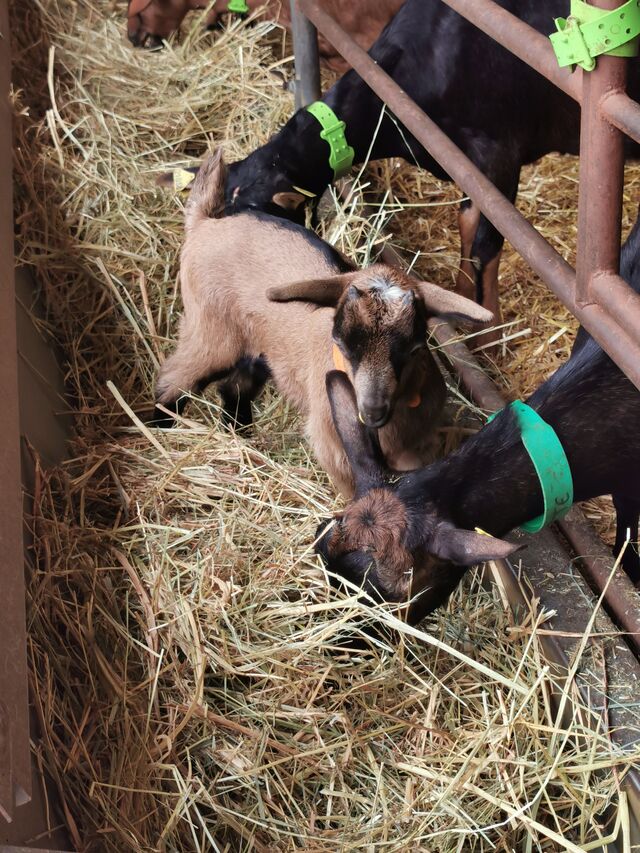Le travail à la ferme m’a tant plu que j’y suis retournée régulièrement en stage par la suite. Le métier change et varie au fils des saisons et l’on enfile successivement les casquettes de « sage-femme » lors des mises bas, fromager, éleveur et biens d’autres. Après l’obtention de mon monitorat et 2 années à enseigner, j’ai progressivement quitté l’équitation pour rejoindre Catherine. Elle m’a prise pour employée et formée pour prendre sa suite. Au début de l’année 2022, j’ai donc repris les rênes de l’exploitation ! 70 belles chèvres laitières de race alpine et 20 chevrettes. Venez à la chèvrerie rencontrer nos chevrettes et chèvres et découvrir tous nos bons produits : bûches, bouchons natures et aromatisés, petits chèvres d’Ile de-France et crottins !