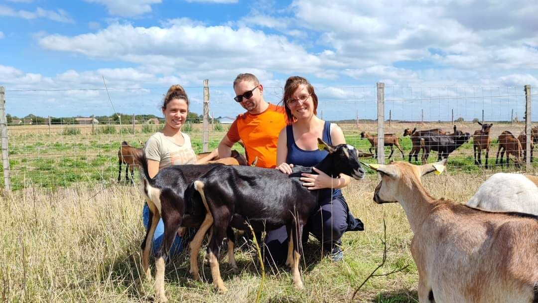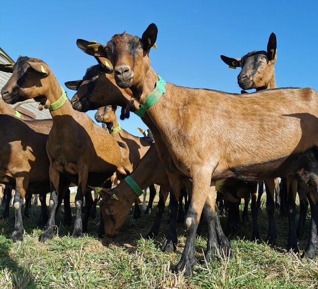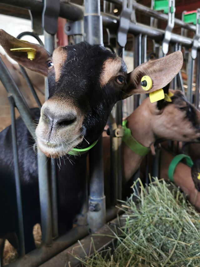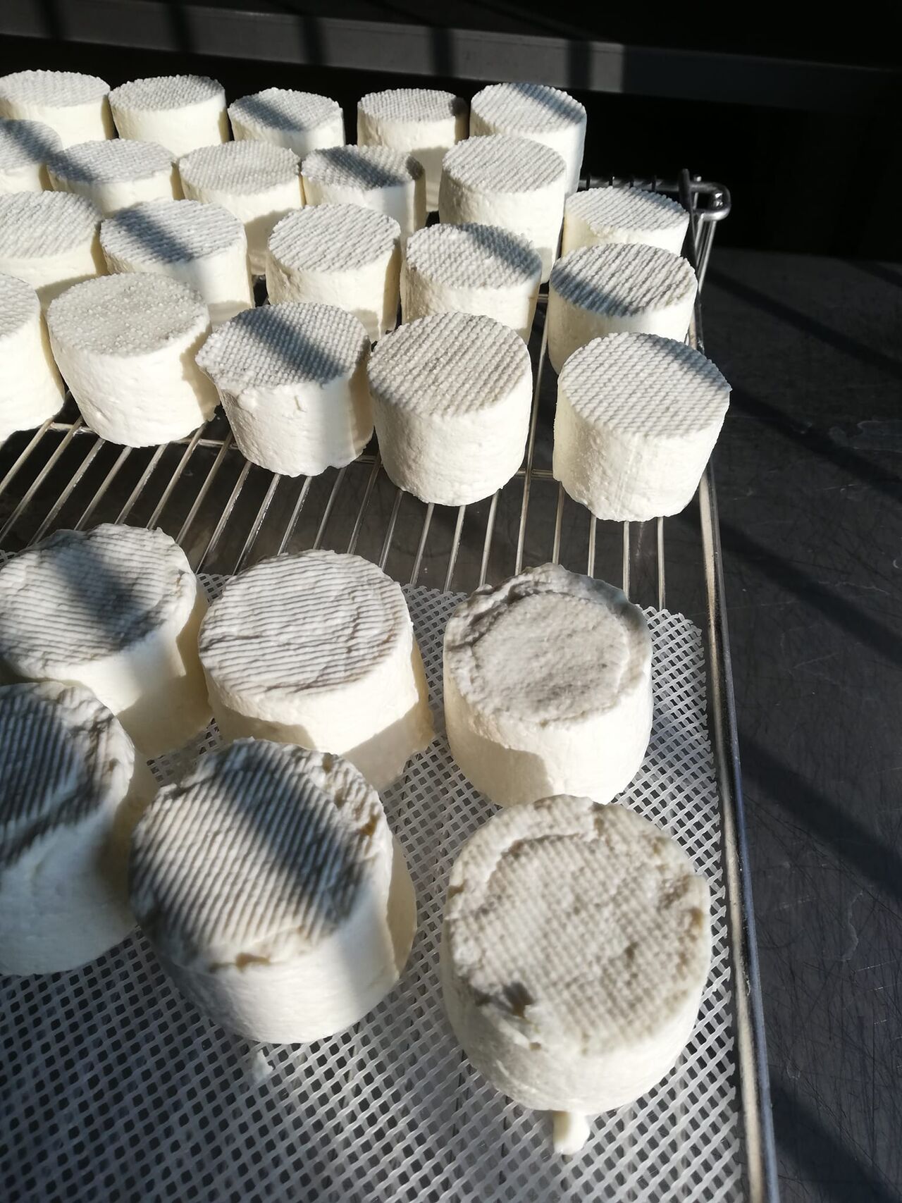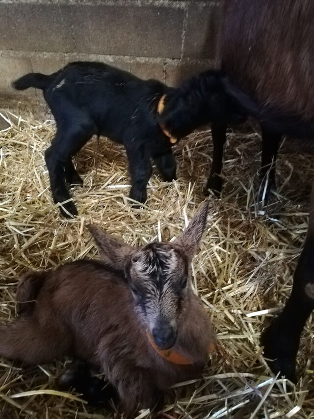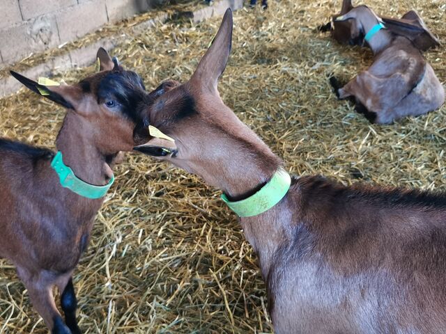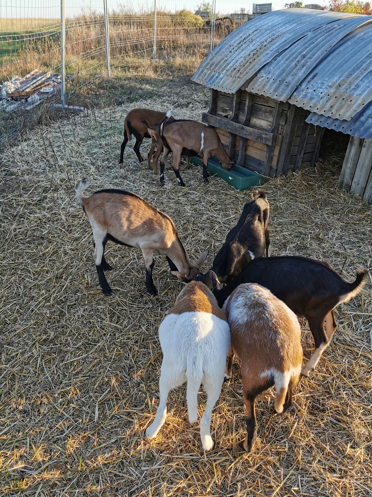 Le travail à la ferme m’a tant plu que j’y suis retournée régulièrement en stage par la suite. Le métier change et varie au fils des saisons et l’on enfile successivement les casquettes de « sage-femme » lors des mises bas, fromager, éleveur et biens d’autres. Après l’obtention de mon monitorat et 2 années à enseigner, j’ai progressivement quitté l’équitation pour rejoindre Catherine. Elle m’a prise pour employée et formée pour prendre sa suite. Au début de l’année 2022, j’ai donc repris les rênes de l’exploitation ! 70 belles chèvres laitières de race alpine et 20 chevrettes. Venez à la chèvrerie rencontrer nos chevrettes et chèvres et découvrir tous nos bons produits : bûches, bouchons natures et aromatisés, petits chèvres d’Ile de-France et crottins !