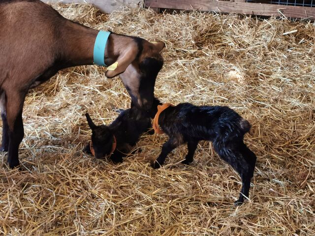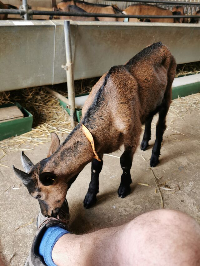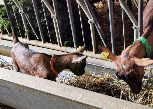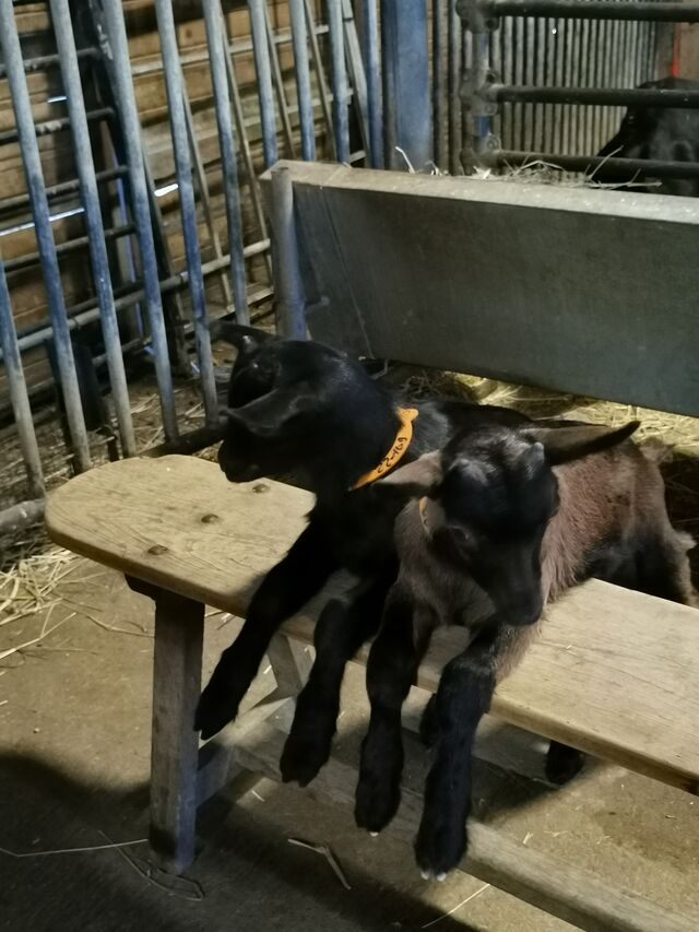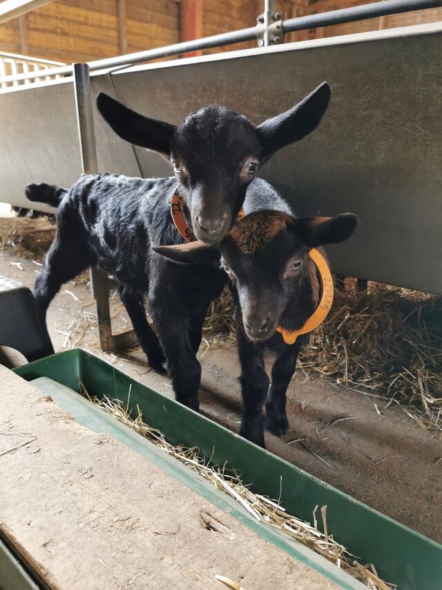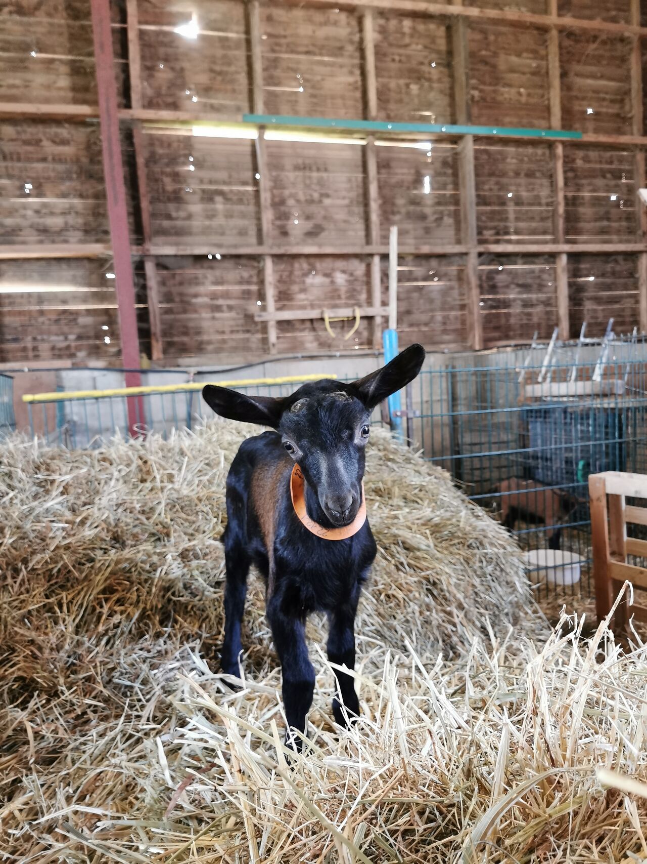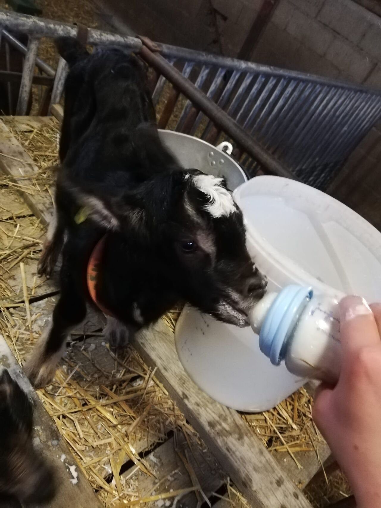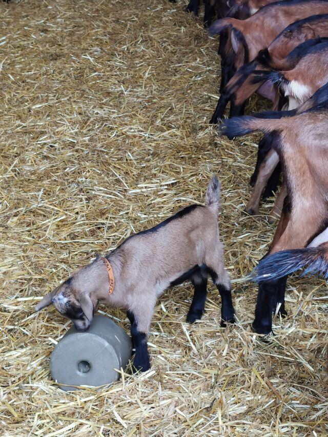 Le travail à la ferme m’a tant plu que j’y suis retournée régulièrement en stage par la suite. Le métier change et varie au fils des saisons et l’on enfile successivement les casquettes de « sage-femme » lors des mises bas, fromager, éleveur et biens d’autres. Après l’obtention de mon monitorat et 2 années à enseigner, j’ai progressivement quitté l’équitation pour rejoindre Catherine. Elle m’a prise pour employée et formée pour prendre sa suite. Au début de l’année 2022, j’ai donc repris les rênes de l’exploitation ! 70 belles chèvres laitières de race alpine et 20 chevrettes. Venez à la chèvrerie rencontrer nos chevrettes et chèvres et découvrir tous nos bons produits : bûches, bouchons natures et aromatisés, petits chèvres d’Ile de-France et crottins !