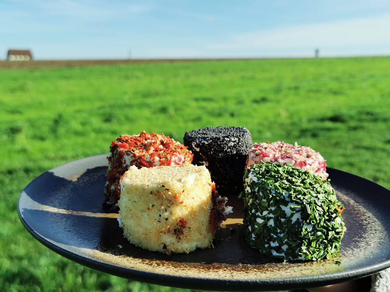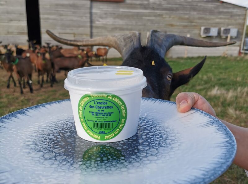 Productions de la ferme : Fromages de chèvre (bûches, bouchons natures et aromatisés, petits chèvres d’Ile de-France et crottins) et LA faisselle !